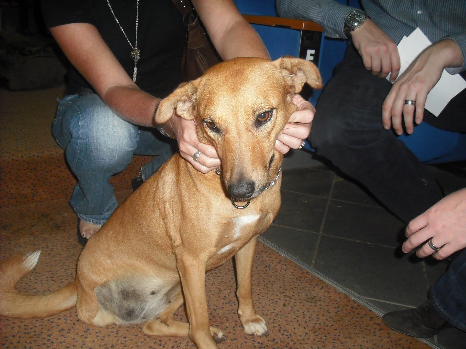 Chisomo ('Grace' in Chichewa, a local language in Malawi) was very sick when LSPCA's vet Dr Richard Ssuna saw her during an LSPCA clinic. She was close to death through malnutrition, but was still managing to feed four beautiful puppies. Her family were not able to look after her, so gave her to LSPCA to care for. Chisomo was a gentle dog, despite being in intense pain from a broken leg. Luke Gamble, a vet from the UK was visiting at the time and making a tv series 'World Wild Vet'. Richard and Luke took Chisomo back to Richard's house to operate on her to remove her leg. They had to operate in Richard's garage, because LSPCA does not have a clinic. This meant the operation was much more difficult with no proper equipment or theatre. But the operation went well and Chisomo was soon up and walking on her three legs! Happily, with lots of food and care from LSPCA, Chisomo made a great recovery and she and all her puppies were found loving 'forever homes'. See the photos below, she hardly looks like the same dog!